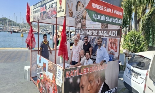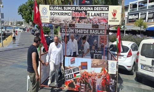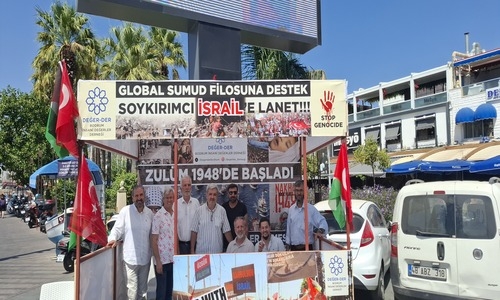 Bodrum İnsani Değerler Derneği, Gazze’ye insani yardım ulaştırmak için yola çıkan Sumud Filosu’na destek amacıyla Bodrum Belediye Meydanı karşısında bir destek standı kurdu.