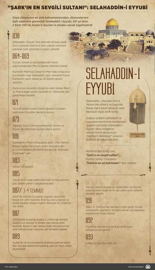 Müslümanlığın yanı sıra Hristiyanlık ve Musevilik için de büyük öneme sahip Kudüs'ü Haçlı işgalinden kurtaran Selahaddin Eyyubi (Selahaddin Yusuf bin Eyyub), İslam tarihinin en önemli liderlerinden biri olarak biliniyor.